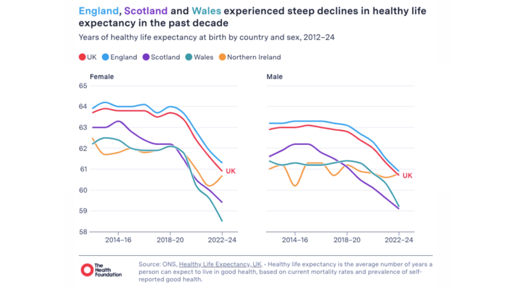 Regional disparities further illustrate the severity of this crisis. London is the only region with improved HLE and much of the country faces a decline driven by poverty, substandard housing, rising obesity and the long-term impact of the COVID-19 pandemic.